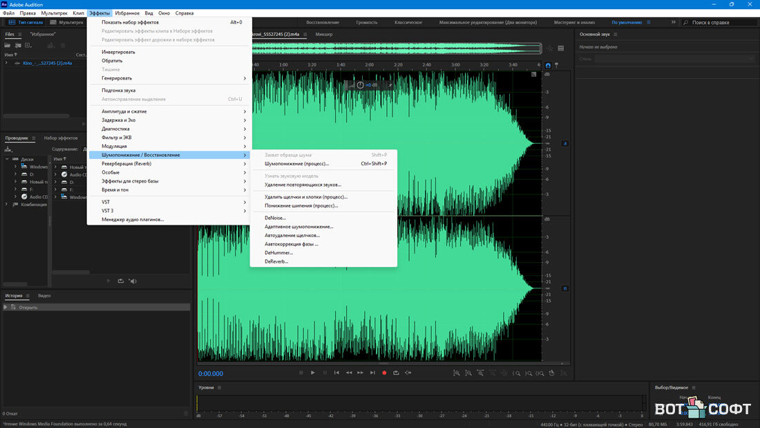 Мощный программный инструмент Adobe Audition 2026 для обработки аудио материалов высочайшего качества и любой сложности. Предназначен для профессионалов, но благодаря простому интерфейсу и интуитивности доступен большинству даже начинающих пользователей после небольшого обучения. Предлагает практически неограниченные возможности при работе с аудио данными, обладает непревзойдённой гибкостью инструментов умеет редактировать, микшировать и работать с звуковыми эффектами.В программе есть практически всё что нужно для профессиональной работы со звуком, начиная от простых редактирования заканчивая полноценной обработкой аудио в звукозаписывающих студиях. Теперь вы сможете превратить свой компьютер в настоящую студию по записи и заниматься редактированием любого аудио прямо у себя дома.