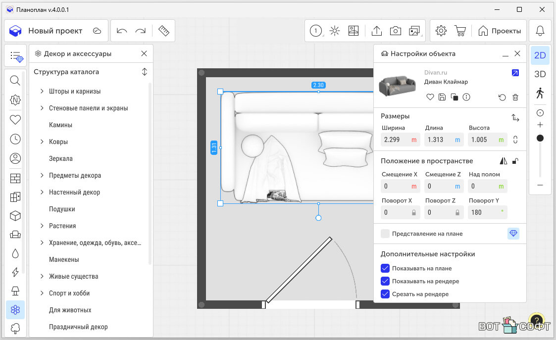 Планоплан - это программа для создания красивых планировок квартиры с простым рисованием. Рисуешь стены, добавляешь окна, выбираешь мебель из сотен вариантов, меняешь цвета — и всё это мгновенно оживает на экране в 3D. Самое крутое это свобода: хочешь планируешь стиль лофта, хочешь — уютную классическую атмосферу.Это инструмент, который помогает сделать твой ремонт продуманным и по-настоящему крутым. Попробуй, и ты поймёшь, как просто создавать пространство, которое хочется назвать своим домом.