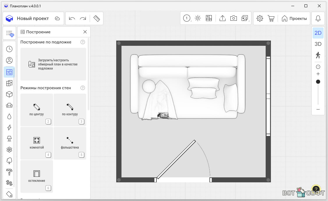- Легко строишь планы — таскай стены, двери и окна как хочешь, быстро и без трудностей.