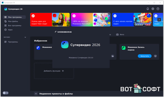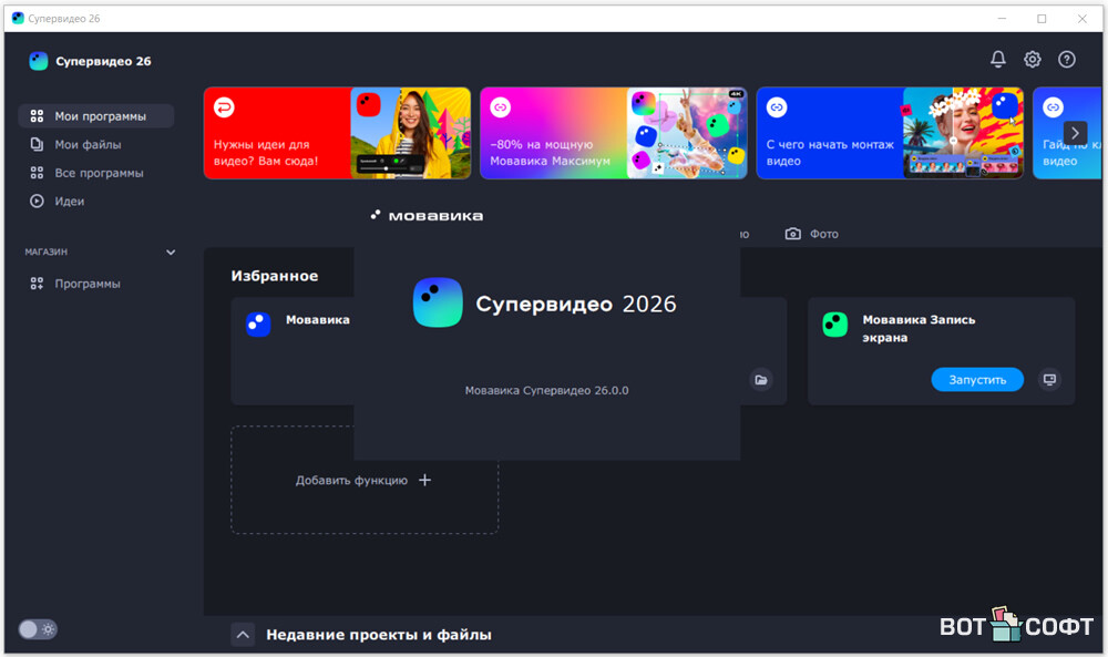 Мовавика Супервидео 2026 - это мощный набор программ для создания, редактирования любых видео роликов. В ней всё максимально просто: загружаешь видео, обрезаешь нужные моменты, добавляешь музыку, эффекты и титры и сразу сохраняешь в любой формат.Программа работает быстро даже на компьютерах среднего уровня и не имеет сложных настроек. Интерфейс интуитивно понятен, так что разобраться сможет даже совсем новичок к тому же на каждом этапе есть подсказки, буквально пошаговый монтаж ролика.