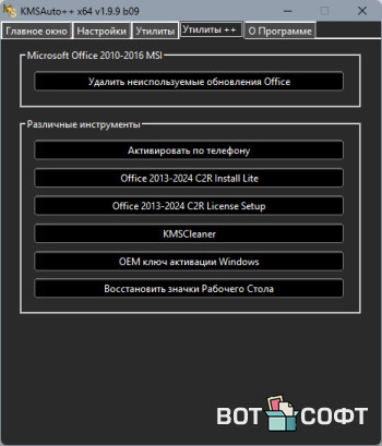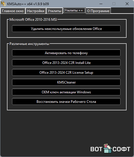 KMSAuto++ 1.9.9 (Активатор для Win 10-11 и Office 2016-2019)