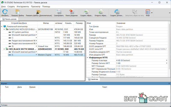 Мощная утилита для восстановления данных R-Studio. Она может работать с любыми дисками, FAT, NTFS и любыми другими. Если ты подумал, что данные пропали навсегда, даже если ты их удалил давным-давно и уже несколько раз перезаписывал, не переживай эта штука может их вернуть. Она даже с отформатированными носителями справляется, так что, если что, не теряй надежды. Короче, если надо восстановить что-то серьёзное, R-Studio — это то, что тебе нужно, лучше других программ в этом деле.Программа R-Studio имеет на своем борту умный механизм анализ данных и тщательного сканирования кластера диска, что гарантирует восстановление большего числа файлов, документов, фотографий. И, что важно, программа не только восстанавливает файлы, но и помогает разобраться, почему именно диск дал сбой и как вернуть его к жизни.
