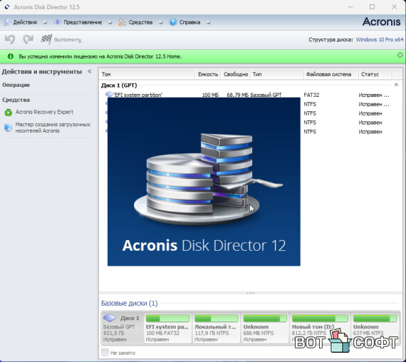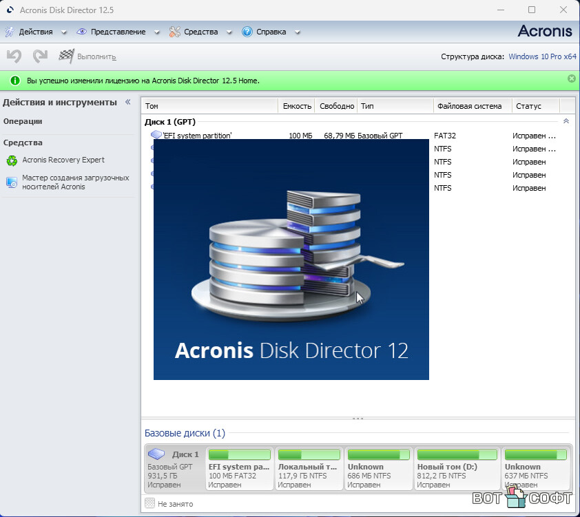Acronis Disk Director 12.5 - это твой незаменимый помощник для работы с разделами жесткого диска. С её помощью можно легко создавать, форматировать, объединять или разделять разделы на жёстком диске, восстанавливать утерянные данные и оптимизировать пространство. Интерфейс при этом простой и дружелюбный, так что разберётся даже новичок.